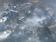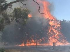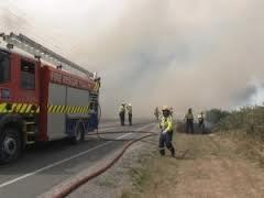 to a raging inferno with flames 65 feet high tearing across the landscape driven by strong winds.
