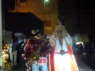 La Befana and her attendants visiting a house. In our village they have a house to house procession - one of the old ladies of the village dresses up as La Befana and is accompanied round the village by attendants and the town band. There's much laughter and drinking of hot punch, before collecting in a courtyard to sing the 'Befana' song.