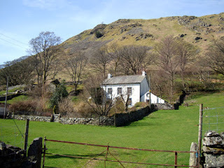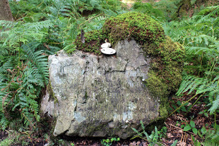 The Old Vicarage, MartindaleDuring the war Kathleen Raine lived in the remote hamlet of Martindale in the hills above Ullwater. It's not easy to get to and the Old Vicarage she lived in still has no road to the door; you have to walk across a field to get to it. It's a short walk from her house to Sandwick on the shores of Ullswater and, as a memorial to her, lines from some of the poems she wrote while she was here are carved into stones in Hallinhag wood beside the lake. The inscriptions are weathered and mossy and the stones are not easy to see among the bracken. This is what I was looking for.