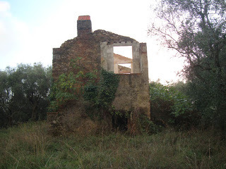 It's been a strange week - the weather turbulent; one moment the kind of thunderstorm you have to stand at the door and watch, but the next temperatures of 27 degrees and the sun shining. On Tuesday evening we went for a walk between showers and discovered the most beautiful house hidden in the woods at the end of a track, surrounded by overgrown olive trees and brambles.