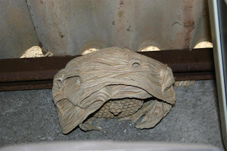 We both hate killing any wild creature, but these hornets weren’t something we could share our house with. Each one was at least an inch long and quite fierce, and there were hundreds of them. Neil got stung - he said it was like being hit over the head with an iron bar. I managed to avoid contact - since even a small wasp produces an allergic reaction I can’t imagine what would happen if I was stung by one of these giants. Getting rid of them was a very difficult business. The adults could be killed with spray insecticide, but what about the young ones in the nest?