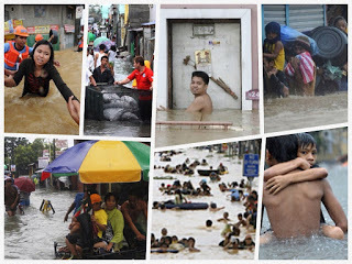 While everyone here is glued to the Olympics, rain on an Olympic scale is falling in the Philippines. My friend Mel U, who writes a wonderful blog called The Reading Life, has sent me these pics of the floods there, which are now covering more than 80% of the entire country. He lives in the capital Manila, fortunately on higher ground, but most of the city is now underwater and he has posted graphic pictures of the floods on his blog. It's hard times even for those who aren't flooded, since shops and all essential services are underwater, schools closed and transport networks non-existent. And it's still raining.