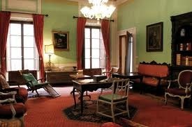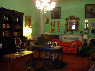 On the other side of the dining room is a small dressing room used by Robert as a study until they acquired the large bedroom beyond it, which was converted into a study and library for him.