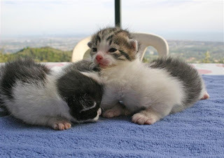 The bat-kittens are two and a half weeks old now and growing rapidly. They have their eyes open and when we go into the shed they peer over the edge of the shelf and squeak. Their ferocious mother has taken to going on walk-about for some R and R every afternoon and only then do we get the opportunity to take them down and have a cuddle. They are just beginning to realise they have legs, so their shelf-life is obviously limited! Their ears are also beginning to unfold properly - the photos underneath were taken two days ago and there's a real difference between these and the one taken today.
