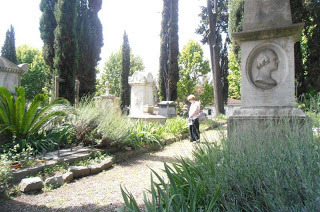 It's quite small - created to accommodate non-Catholic visitors - and it contains the tombs of other nationalities too - Americans, Russians, Swiss, German, French - as well as a cluster of Jewish graves. The cemetery has been closed to burials for a long time - Elizabeth's son Pen was buried in the new cemetery outside the city - though it's still possible to get permission to have your ashes interred there if you are famous enough!