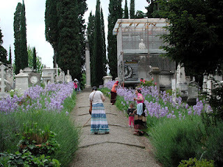 After the graveyard we wandered off into the backstreets of Florence to find our favourite restaurant - La Nella - well away from the tourist track and then to spend the afternoon at Elizabeth Barrett Browning's house. - More pics tomorrow.