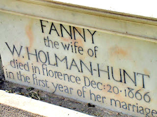 Just behind it is the grave of Fanny Holman Hunt, who died in childbirth in Florence less than a year after her marriage. Holman Hunt himself sculpted her tomb.