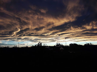 It's amazing how soon things become just a memory and you're so firmly back in place you wonder if any of it was real! It was hard coming back from New Zealand - hard to leave family not knowing how long it might be before I can see them again - hard to come back to the daily grind after such a wonderful, relaxing holiday. One month of lazing about, eating wonderful food cooked by someone else, sitting in the garden, walking, browsing the shops, doing ordinary stuff and talking to my daughter and grandchildren. Two long flights - the first about 10.5 hours, the second 13.5 with a lot of hanging about in Singapore in between, really took their toll, especially when you're feeling down. But I'm left with some wonderful memories. New Zealand skies are some of the most amazing I've ever seen anywhere in the world. Here's one of them: