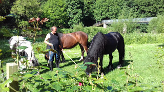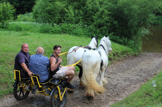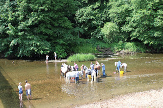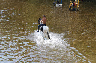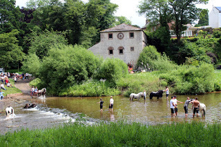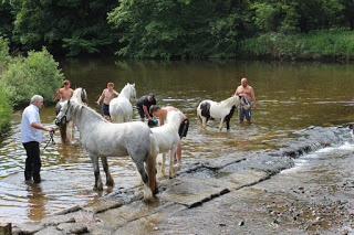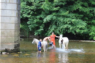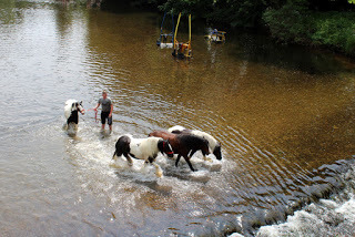 It's Appleby Horse Fair week when gypsies from all over the UK, Ireland and northern Europe converge on our small town. A quiet country place becomes more like the Wild West. Living in an old mill on the river bank we see more of it than anyone else. It's a wide, tranquil river stretch to wash and run horses in; the weir is a good swimming place and the ford provides a bit of excitement. The ford gets used a lot because horses are banned in town and it becomes the only way to come and go from the road on the other side. Our driveway is crammed with horse-boxes, the river bank a parking place for gigs and horses. It's difficult to get in and out so we stay in as much as possible. We see some beautiful horses. Here's a slide show of some of the highlights, and a bit of the downside.