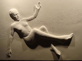 This relief, by Swiss artist Maja Thommen, looks simple, but is incredibly intricate. She's a very interesting artist who paints, creates installations and also performs with a gypsy punk band. It's called Donna Velata - veiled woman.