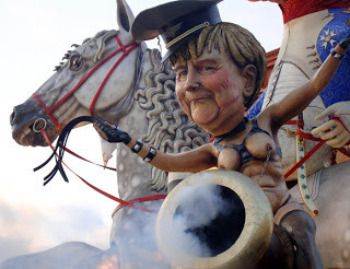with Angela Merkel riding shot gun dressed (or undressed) as a dominatrix.
