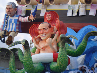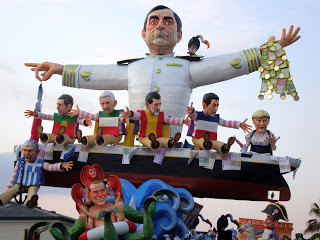 And it was hard not to connect this float with Captain Schettino of Concordia fame, steering the ship of Italy onto the rocks, a vulture on his shoulder, taking the whole of Europe with him,