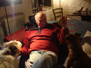 We're cat and dog sitting at Peralta for ten days or so at the moment - one frisky little hunting dog called Ellie who's obsessed with chasing objects, an elderly, deaf, arthritic, but very aristocratic Spinoni called Frank (short for Frankenstein!), Vaniglia- a shy burmese cross cat, and a big, affectionate black and white male called Pino. Tonight they're all in beside a roaring fire and we've opened a bottle of wine to keep out the weather.