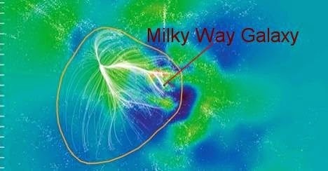 Cosmology is one of my favorite subjects. It is also a subject that isn't often in the new, or subject to bloggable topics. Today, however, news has broken that a cosmology mapping project and reached an amazing discovery. They have used several measurements to determine that the Milky Way, our local group, and the Virgo Cluster, are all part of a much larger structure they have named the Laniakea supercluster. Our galaxy is located on a dense spur that sticks out to one side.