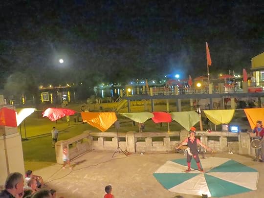 The pretty little town full of very old buildings and 19th century architecture is a pleasant treeful and green place to walk and admire the full moon rising over the river. Even though the town hosts this extravaganza every year, there isn't a commercial atmosphere. One feels safe, as there is lots of security about, but the attitude is kind and hospitable without the drunken rudeness that often accompanies mass festivals and events. The town and the Carnaval are very family friendly.