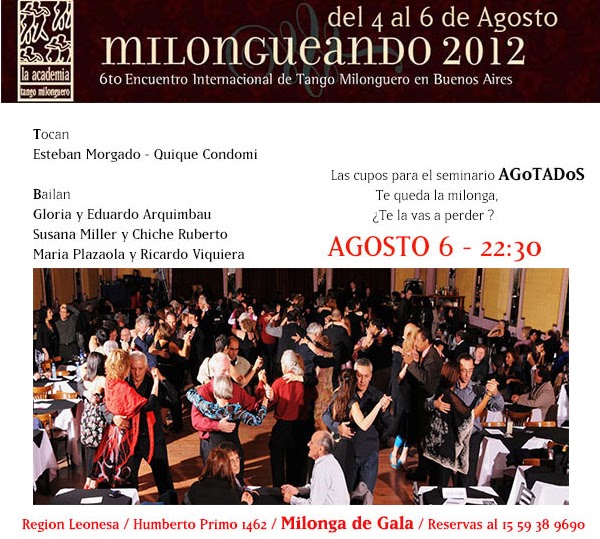 Gloria y Eduardo with tangocherie after their performance at Milongueando 2012Here the legendary couple is dancing a milonga at Sunderland in 2009. Still today they travel internationally giving classes at festivals and workshops. They are old-school, stage dancers who choreograph their routines as opposed to milongueros who dance social tango, but their performance quality, energy and personalities make them always entertaining to watch. Gloria y Eduardo Arquimbau are classic. As they themselves say, Forty years of dancing tango is not nothing!