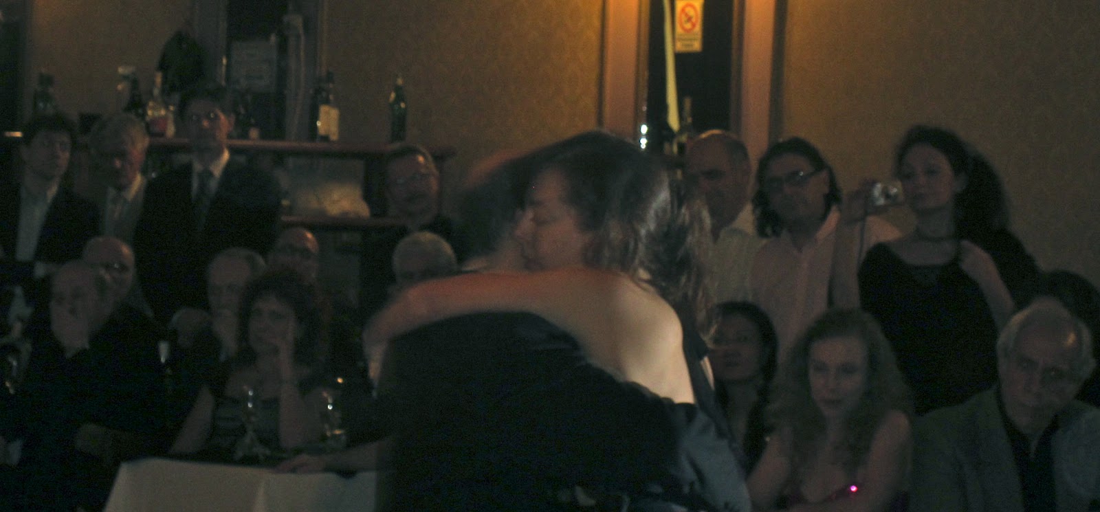 The well-known guitarist Esteban Morgado and violinist Quique Condomi of Tanghetto, Esteban Morgado Quarteto, and other recordings, took center floor and played several wonderful renditions of familiar pieces. My favorite was the smash-up of Paul McCartney's "Blackbird' with the tango "Uno." Below is a video from YouTube of another performance, but unfortunately it cuts off right after the tango begins. Last night's passionate rendition was so much better than this video, sorry that I didn't record it. I'm also sorry that the photos are not the greatest, the fault of the lighting, distance, the camera, and my lack of expertise. But you get the idea.