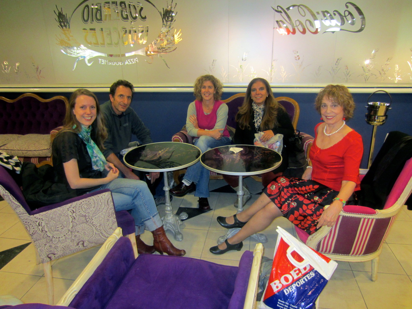 We all wanted to celebrate, so we stood in line at one of the many cafes and ordered a bottle of Champagne, and another of malbec, while Ruben and Daniel were trying to arrange a table for six in the crowded cafe. Every time I looked over at Ruben, he was carrying a plastic chair over his head through the crowd.