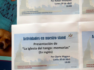 Today begins the 3 week run at the huge fairgrounds in Buenos Aires, La Rural. Don't miss it if you are here and love books. And if possible, please attend my reading of The Church of Tango at the U.S. Embassy booth on Monday, April 30 (a holiday), at 6 p.m. If you go at 5:00 you can hear Ian Mount speak on the wines of Argentina, watch my presentation, and then stay to hear Donigan Merritt read from his novel, Blossom. Another American writer, Stephen Page, will be reading his poetry on Friday, April 27, at 5:00 p.m.