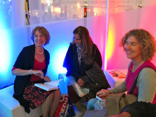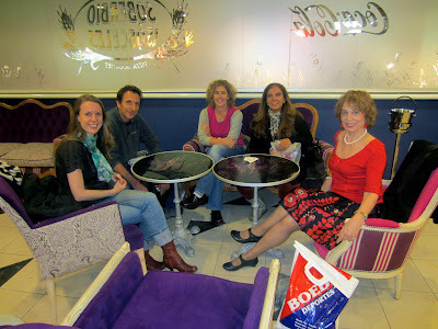 The young man at the register told us we couldn't seat us there, and we said, no problem, our guys are arranging it over in the corner. He called someone on his cell phone while we were anxious to order some munchies to go with the drinks. The line behind us got longer and longer, but he was unflappable. Finally all was paid for, and instead of letting us go to our corner table, a waitress appeared and, opening a velvet rope, ushered us upstairs to the VIP Salon! We sat on purple and cerise velvet chairs and had our wines served in appropriate crystal far away from the bustling and noisy crowd downstairs. It was like a serendipitous miracle. And so much fun. If this is the author's life, then it's for me! But now I've got to get back to work on my prequel.