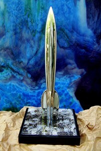 Trophy: The trophy features a stylized rocket ship, however the base of the trophy changes each year.
