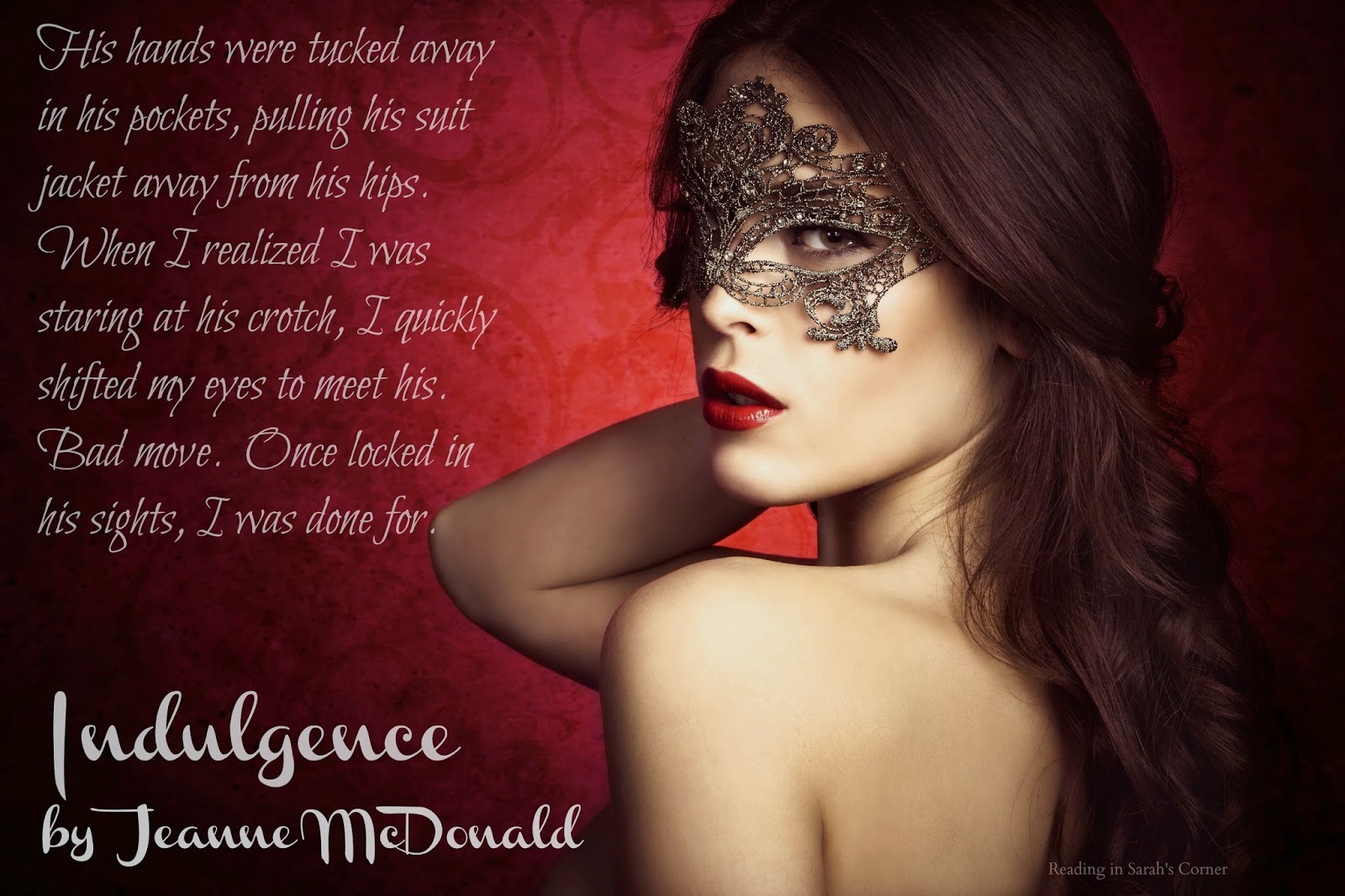 Indulgenceby: Jeanne McDonaldGenre: Erotica/Erotic RomanceRelease date: January 4, 2015One night of indulging in her carnal nature will unlock a world of mystery and desire she never dreamed existed.