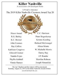 I’d been to two conferences this year and wasn’t about to attend another. Then this happened. Since I last attended, Killer Nashville has moved from Nashville proper to a hotel in an industrial park in nearby Franklin. No pedal pubs hooting by on the street! No sneaking out to hear music! I also found this new hotel/motel disconcerting with elevators where you’re on display like a bug. No fluffing your hair or wriggling in your dress to prepare for a grand entrance.