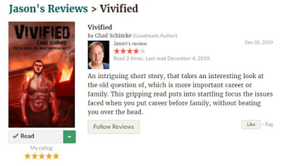 Review of Vivified by jason – “An intriguing short story, that takes an interesting look at the old question of, which is more important career or family. This gripping read puts into startling focus the issues faced when you put career before family, without beating you over the head.”
