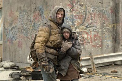 THE ROAD - The Road is a post-apocalyptic film (2009) based on a Pulitzer Prize-winning book (2006) written by Cormac McCarthy. Directed by John Hillcoat, the film stars Viggo Mortensen and Kodi Smit-McPhee as a father and his son. The story flips back-and-forth between past/ present, as an unspecified cataclysm destroys almost all life on Earth, ending civilization in the process. Somehow, the father and son are optimistic, in a bleak landscape of almost unimaginable grief and loss. The narrative’s pace is lumbering and plodding, punctuated with brief glimpses of terror. Shot in real locations, mostly around Pittsburg PA, deliberate choices were made to avoid using CGI to enhance its stark realism. Featuring an eerie score heightened by loops and percussion, including violin piano and wind instruments written by Nick Cave and Warren Ellis.
