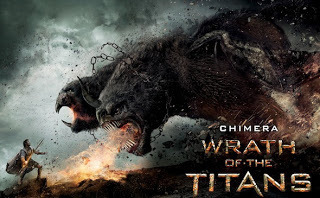 PERSEUS AGAINST THE CHIMERA(wrathofthetitans.warnerbros.com)This sequel had much the same flavor as the 2010 movie, and the special effects didn't disappoint. Chimerae dropping out of the sky looked more real than Harryhausen's type of creatures, although they weren't the chimerae I'm used to. Again, Sam Worthington plays Perseus, son of Zeus, king of the gods (played by Liam Neeson); Hades (Ralph Fiennes) and Poseidon (Danny Huston) finished the trio of the sons of Kronos. Ares and Hephaestus were the only other gods present in the movie, and they seemed pretty well cast (although Hephaestus always struck me as an older, muscular god (he IS the blacksmith of the gods, after all), with misshapen legs, since he was cast down from Olympus when he tried to intervene in a fight between his mother, Hera, and Zeus, and his legs were broken. But, that's more THE mythology than the movie.