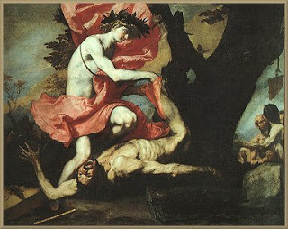 Other acts of horror, things that modern technology could show very easily, encouraging audience members to vomit, involved other gods, this time, Apollo. A satyr, Marsyas, challenged Apollo to a music contest. Either Marsyas didn't know his opponent well, or he had forgotten: Apollo was the god of music. Needless to say, Apollo won, and for his hubris, Marsyas received a heinous punishment—Apollo flayed him alive.