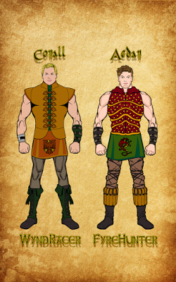 So... I started plotting and planning. Firstborn into this novel series is Conall, a sixteen-year-old boy who lives in Silver Birch Glen and has a hawk named Lann as his companion. He's swift on his feet and eager for adventure, and he's a spiritual lad with an eye for detail. Next came Aedan, a fiery young man of sixteen whose hunting skills are unmatched in his clan. A red dragon named Fiachra bonded to him when the hatchling lost its mother, and they're inseparable.