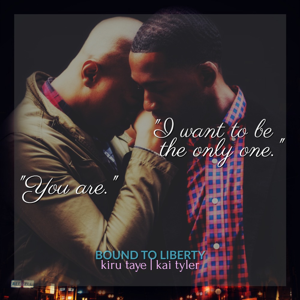 Title: Bound To LibertyAuthor: Kiru Taye, Kai TylerSeries: Bound, Book 5Genre: Contemporary Romance, LGBT, African-American, Romantic Suspense