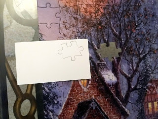If you’re cutting a piece out of the puzzle photo or box, lay your blank replacement piece over top of the section that best approximates the missing bit. Trace it, cut it out, and glue it to the top of your blank piece.