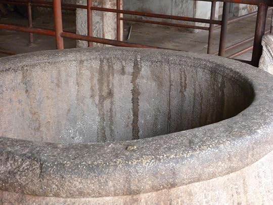 கருங்கல்லில் குழித்து பெரிய நீள்சதுரக் குழியில் சோறும் அடுத்திருக்கும் சிறு வட்டக் குழிகளில் வியஞ்சனமும், புளிக்குழம்பும் வைத்து விளம்பிய கல் தட்டு. தட்டின் தாராளமான நீள அகலம் மற்றும் ஆழம் பார்க்கும்போது வயிறு நிறைய, தற்போதைய மூன்று சராசரி ஆட்கள் உண்ணும் ஆகாரத்தை அந்தக்கால மனுஷர் ஒருத்தரே உண்டதாகத் தெரிகிறது. அவர் யாரென்று கேட்கவேண்டாம். It appears a plateful of food was consumed by a single person .