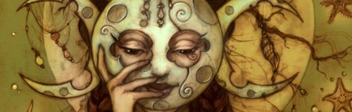 Here then is the cover design for I Am Luna, which is published on 24th April. The illustration is ‘Lady Moon’ by Tom Brown, the outstanding steampunk artist whose work has graced seven of my novels. This is an illustration he did for a song written by his partner, the musician Talis Kimberley.