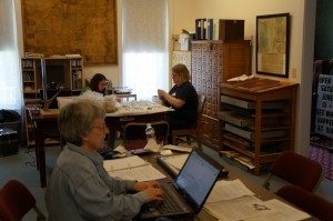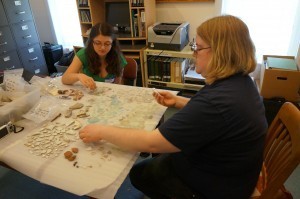 On the first day of the excavation volunteers helped mark-off the STPs, test pits, that we wanted to expand based on the previous results while additional volunteers worked to accession the results from the 2002 excavation inside. After a few hours the teams had managed to process a number records while the excavation teams began uncovering artifacts.