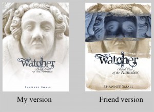 (ed. – Tomorrow I will try to put up the top rules of good cover design based upon what I learned from working on the Watcher cover with Anthony.)