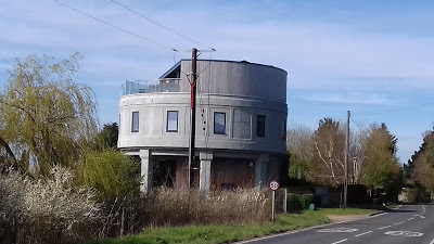 Water tower converted into a house on that road. Not to my taste but probably a good place to live with a great view from that balcony up there. I wonder what shape the rooms are inside?