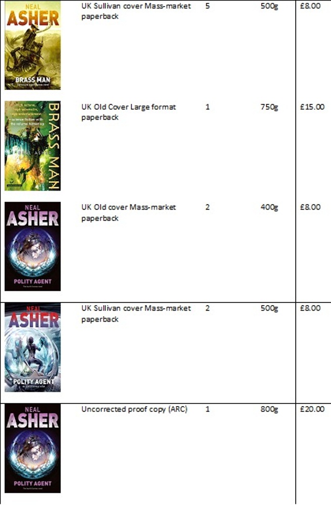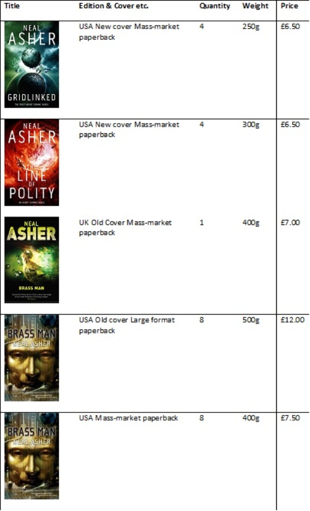 The new copies of Polity Agent and Line War below have gone. One and three on the list below.