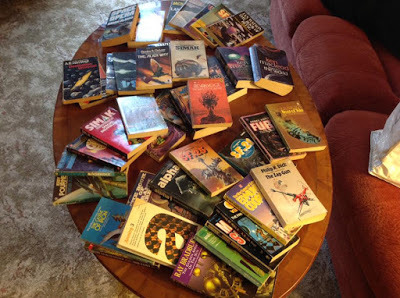Over the last month I polished off 12 Pratchetts in the collection above. I then felt the urge to return to my habit of old which was wandering around second-hand bookshops in search of sfnal (and fantasy) gems. Last week Julie and I went down to Brighton and then Hastings to visit my old editor, Peter Lavery. There I wandered into a shop and this happened: