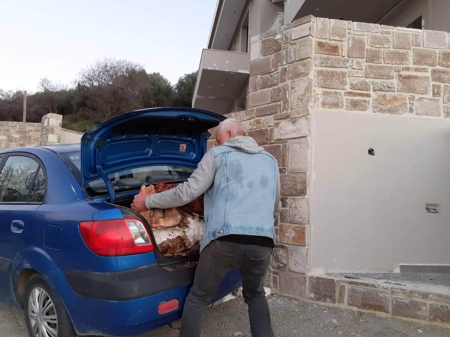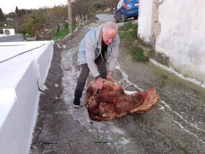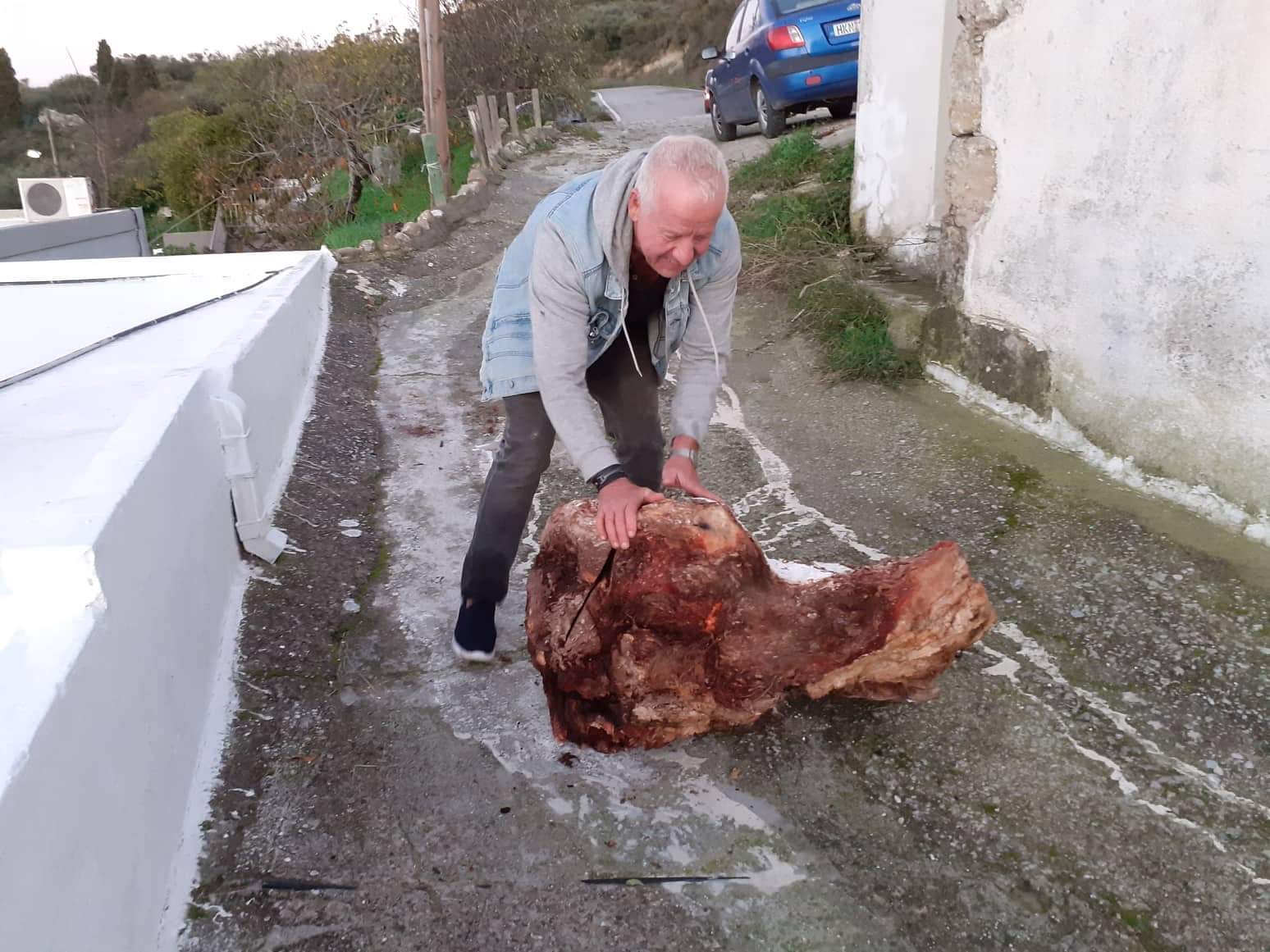I can’t remember the precise date, maybe 2007 – more than ten years ago now – when I first spent a winter on Crete. The house was cold and damp then and it took Caroline and I a while to get a stove installed. Memories of that time arise. The roof was in three parts with the edges terminating over two-foot thick walls but not overlapping. Some attempt had been made to fill the gaps but, with expansion and contraction it hadn’t worked. We had water pouring in when it rained and running along the beams and the sound of water dripping in buckets all night. On New Year’s Eve we drove down to Makrigialos in a monsoon that didn’t let up for ten hours. After that celebration the drive back was very slow, rubble all across the roads along with the occasional car-killer boulder. In the house we found the bedroom flooded with a little waterfall pouring over the step into the kitchen. Cosy times. Drunken slumber killed the cold but did not impart sufficient unconsciousness for me not to hear the thud of a scorpion dropping on my pillow. They like the damp, see.