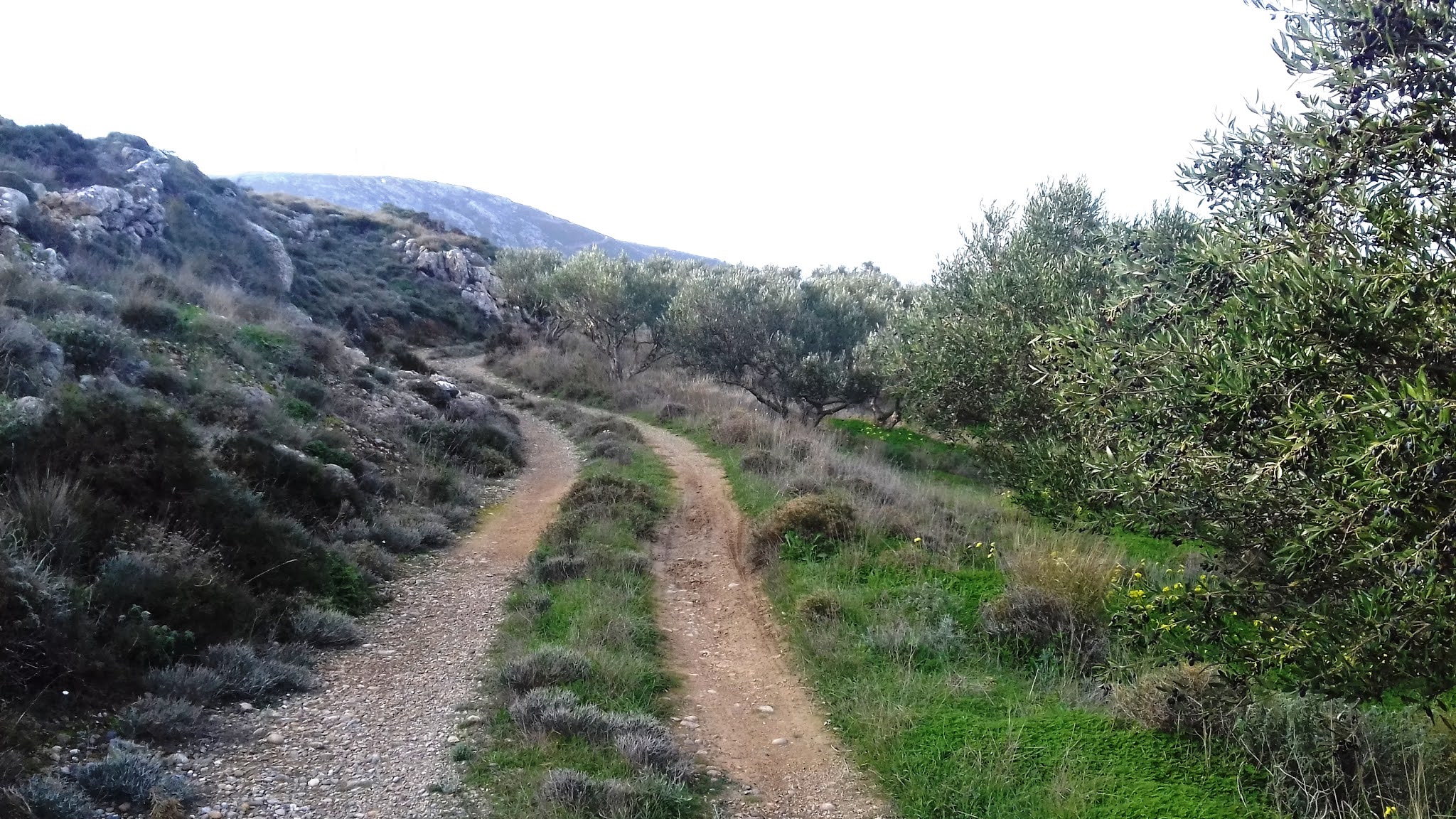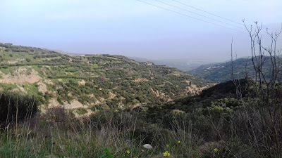 The view once I turned the corner at the top of the road onto the paths. Not very clear on this day. Often you can see Sitia, the sea and an island off the coast as clear as glass.