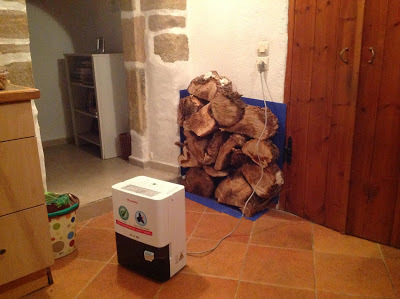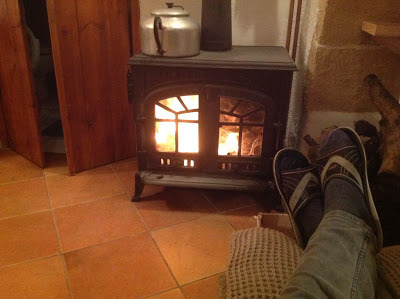 The stove pumps out heat burning olive wood (100+ Euros for a pickup truck full) and other wood I’ve collected.