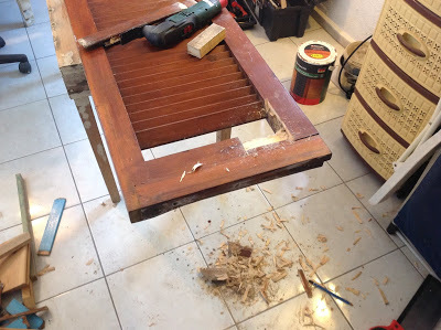 Other work has been all the shutters around my house. I knew some of them had woodworm but, when I started investigating, I found that most of them had some woodworm or rot. The pictures here are of just a couple of them. Out of eight shutters I had to do surgery on six. All of them I took off and repainted, also rubbing down and painting the metalwork. This kept me nicely occupied for a good few weeks!