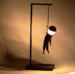 I think this is the perfect lamp for a writer to have on his desk. Well, for this writer to have on his desk. I love the gallows humor of it. (Ha ha! See what I did there!) But I also know how the little fellow feels. There he is, strangling, even as his head lig...