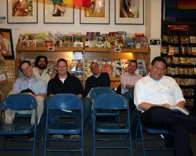 Take a good look at the photo on the right. This is the view an author has when standing in front of an audience at his (or her) reading. I took this Wednesday night at a reading at A Different Light bookstore for my novel What We Remember.