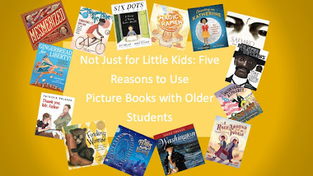 For specific tips on sharing these and other narrative non-fiction picture books with teens, see my article - Not Just for Little Kids: Five Reasons to Use Picture Books with Older Students over at Beth Anderson's blog. She was another author on the panel with Andrea Wang. The book giveaway mentioned in the article for Story Frames ended in November, but the tips are still invaluable. The winner of that giving away was Lillie Pardo.