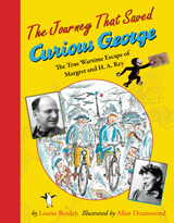 Read about the escape of the Rey’s in The JourneyThat Saved Curious George: The True Wartime Escape of Margaret and H.A. Rey , written by Louise Borden and illustrated by Allan Drummond. ISBN 978-054-7417462. 80 pages. (2010) HMH.
