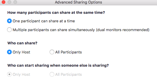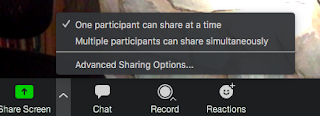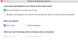 3. To prevent other people from sharing inappropriate images during a meeting, click on the arrow next to Share Screen and go to Advanced Sharing Options.